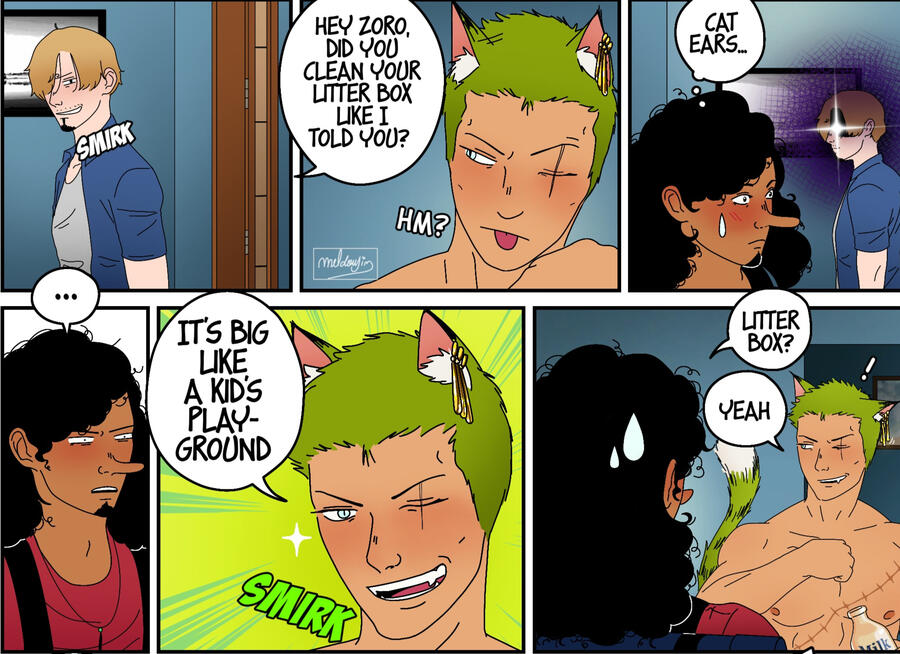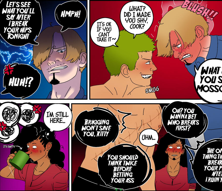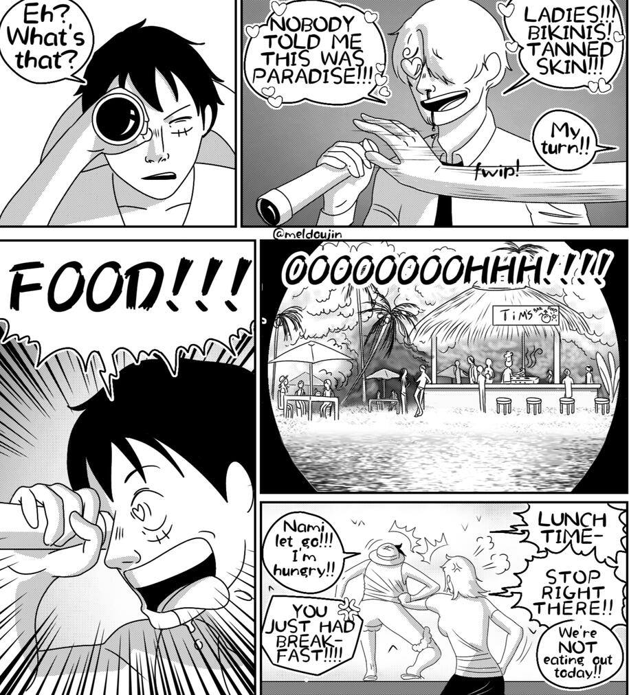 I also want to show you some of my work with comics. Both of them are One Piece themed fancomics and you can find them on my AO3 profile and my ko-fi shop, respectively!